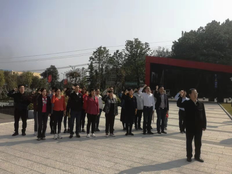 在陈树湘烈士事迹陈列室,党员们仔细观看一幅幅弥足珍贵的图片,认真聆听陈树湘烈士的英雄事迹。陈树湘烈士断肠明志,以年轻的生命诠释了自己对党的绝对忠诚,这样的壮举让党员深受教育。参观结束后,在杨兴龙的领誓下,全体党员面对党旗,庄严宣誓,重温入党誓词。