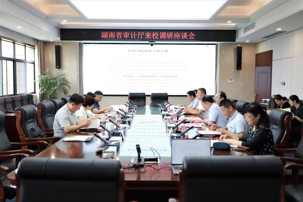 6月13日下午,湖南省审计厅党组成员、副厅长周伟,审计厅内部审计指导中心主任魏静媛一行4人来我校调研内部审计工作开展情况,党委书记杨小云出席座谈会并致辞。座谈会由党委副书记、校长黄立宏主持,党委委员、副校长张世英陪同调研并参加座谈会。